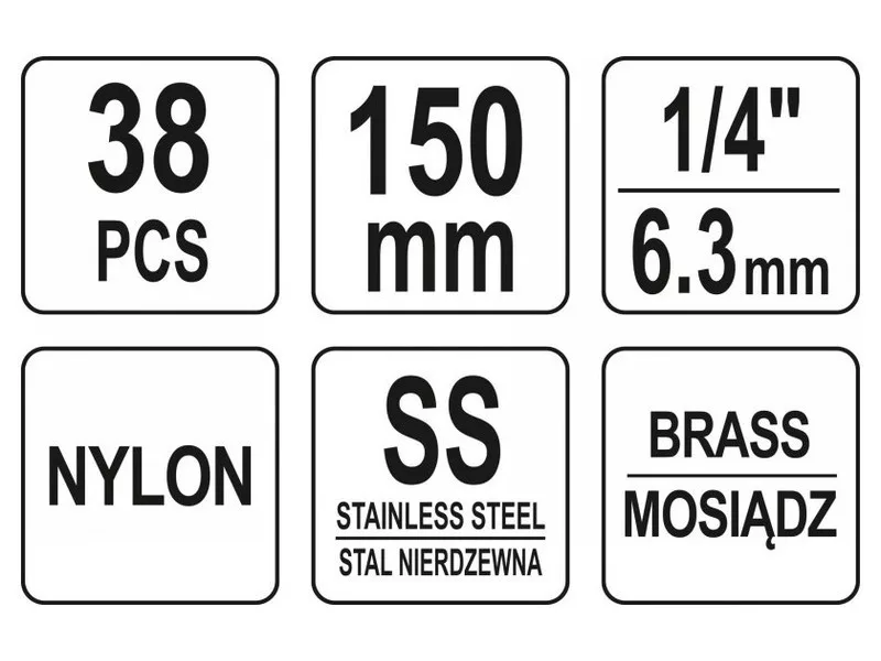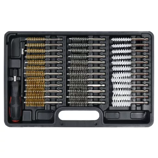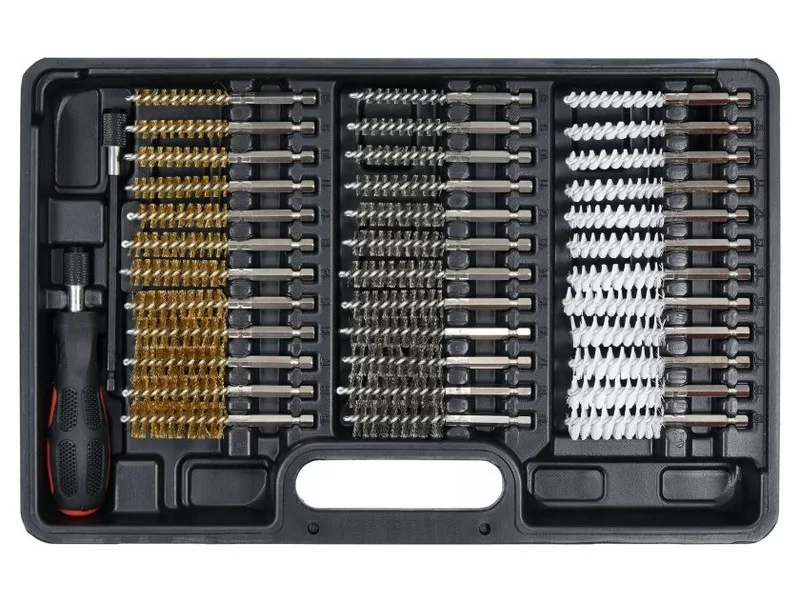 | Nastavte obsah | kefa z nehrdzavejúcej ocele x12, mosadzná kefa x12, nylonová kefa x12, predĺženie (150 mm), rukoväť skrutkovača (150 mm) |