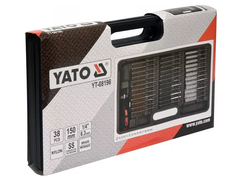 38-dielna súprava kefiek určená na odstraňovanie nečistôt a pilín z otvorov, potrubí, zásuviek vstrekovačov, zapaľovacích sviečok atď.