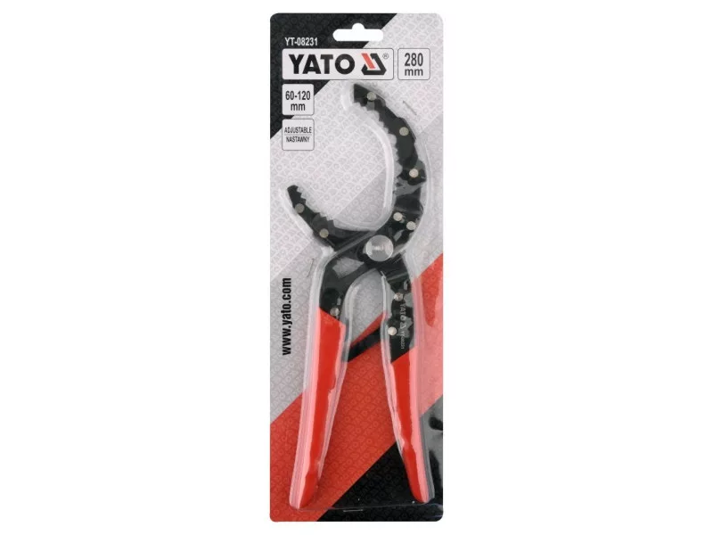 Samonastavovacie kliešte YATO na olejové filtre s priemerom 60-120 mm.