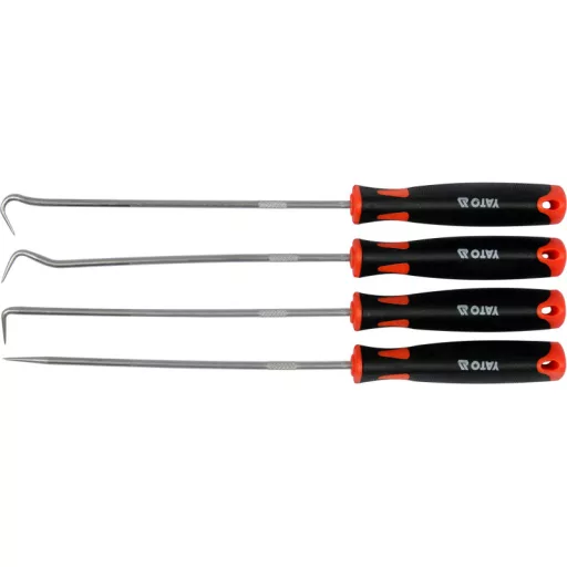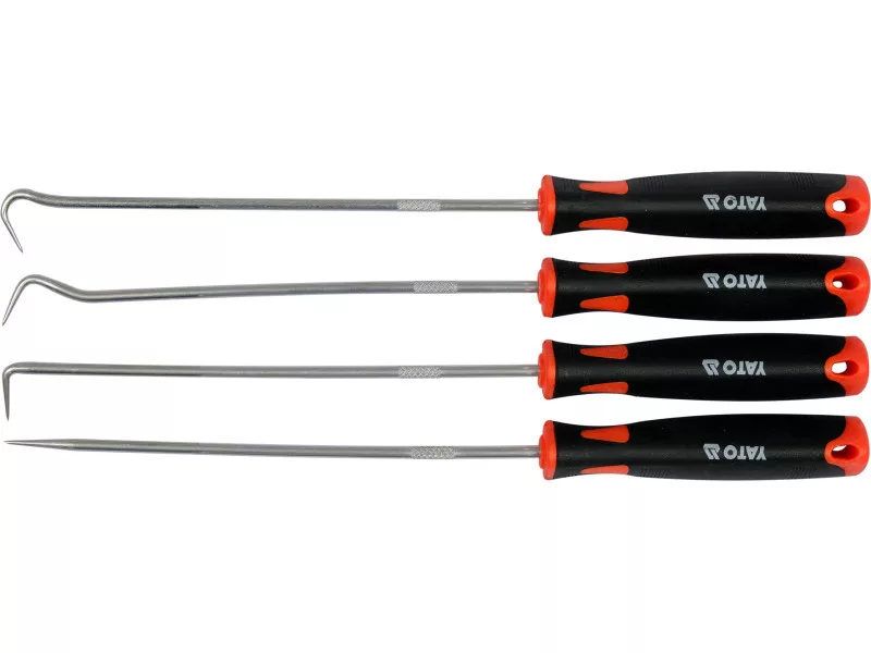 Sada háčikov s rukoväťou. Háčiky majú kalené a pochrómované čepele vyrobené z ocele 40 CR. Rukoväte sú vyrobené z dvojzložkového plastu pre bezpečné uchopenie.