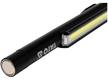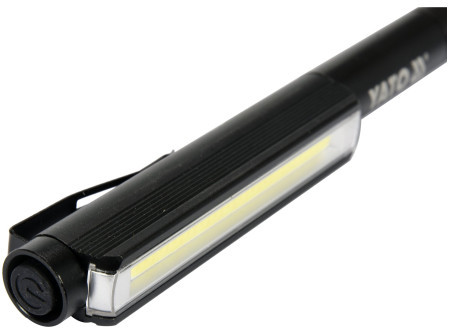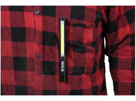Yato hliníková kontrolná vrecková svietidlo s troma režimami, vrátane červeného varovného svetla. COB LED poskytuje silné, rozptýlené svetlo s intenzitou 200lm. Ďalšie vlastnosti: magnetický základ a kovová spona.