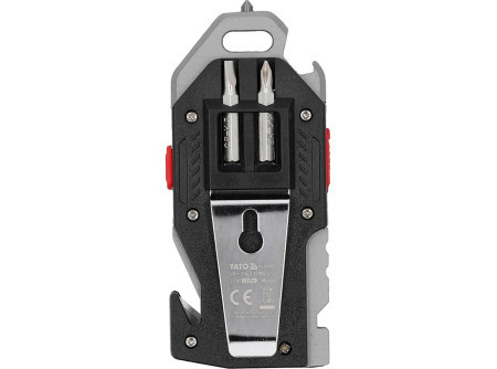 Multifunkčná kapsičková svietidlo s dvoma typmi LED a svietením v šiestich režimoch, ktoré možno prispôsobiť podmienkam a aktivitám. Ďalšie prvky umiestnené v puzdre môžu byť užitočné pri každodenných činnostiach a aktivitách na čerstvom vzduchu.