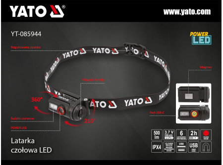 Nabíjacia čelová lampa s červeným a bielym svetlom, šiestimi režimami osvetlenia pre prispôsobenie sa rôznym podmienkam a aktivitám. Vysiela svetelný tok až 500 lm, s dobou prevádzky až 23 hodín a maximálnym dosahom 85 m.