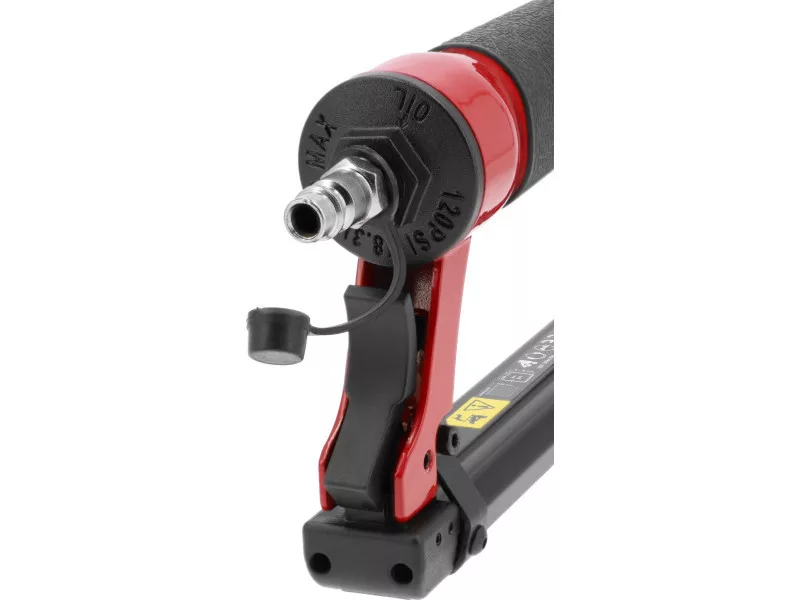 Pneumatické napájanie s maximálnym pracovným tlakom 0,8 MPa zabezpečuje konštantnú silu zatláčania a vysokú účinnosť. Štandardný vzduchový konektor a prispôsobenie na hadicu 3/8" (9,5 mm) umožňujú nástroju bez problémov spolupracovať s väčšinou kompresorov dostupných na trhu.
