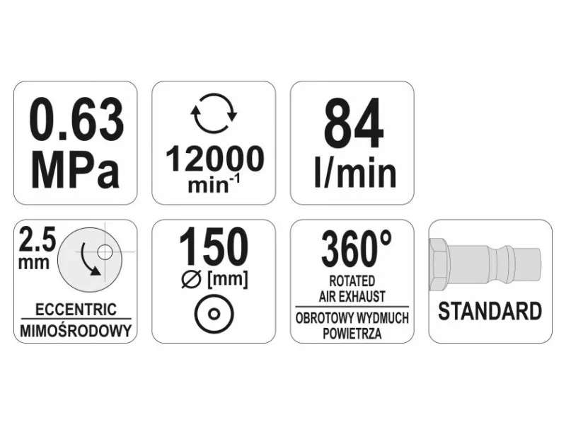 Profesionálna excentrická brúska poháňaná prúdom tlakového vzduchu. Vďaka brúsnym materiálom naneseným priamo na kotúče umožňuje brúsenie a leštenie rôznych materiálov. Používa sa v automobilovom servise a priemysle.