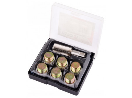 Jednoduchá sada na opravu závitov výpustného šróbu olejovej vane, pre prevodovky atď. Vyrobila pre bežné závity používané vo väčšine automobilov a ľahkých nákladných vozidiel.