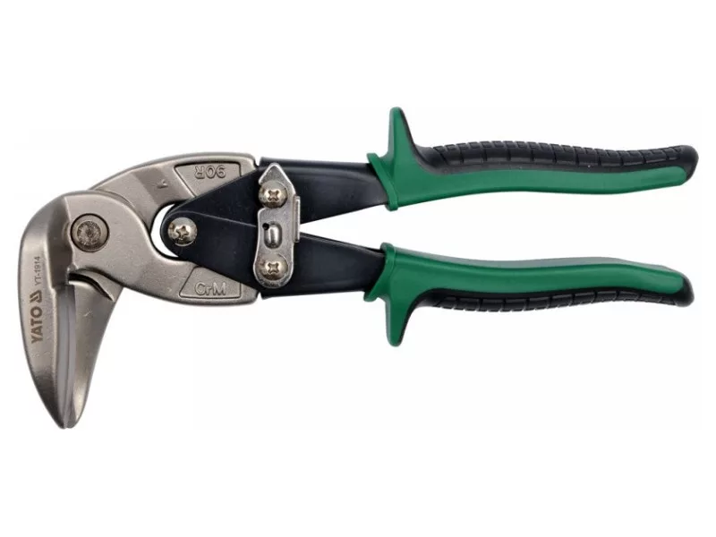 - hlava nožníc naklonená o 90 stupňov vzhľadom na rukoväť, najmä na strihanie plechu na ťažko prístupných miestach