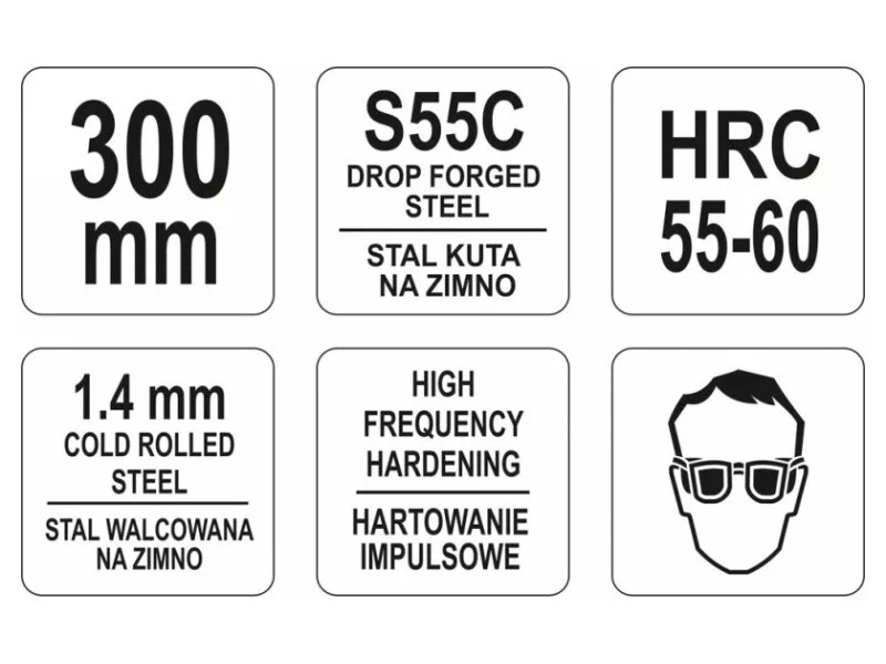 - indukčne kalené čeľuste na tvrdosť približne 55-60 HRC, účinne strihajú oceľové plechy do hrúbky 1,4 mm, oceľ valcovanú za studena