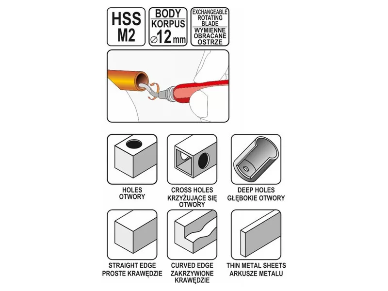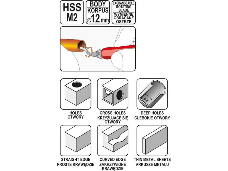 • Vymeniteľné čepeľ HSS M2 zabezpečujú dlhotrvajúcu efektivitu a jednoduchú údržbu