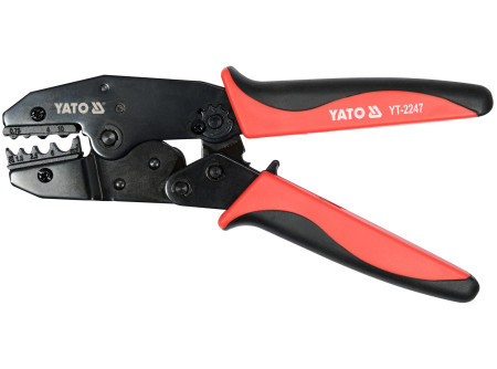 YT-2247 kliešte, ktorých úlohou je stlačenie tlačových spojok, majú čierny povrch pre ochranu proti korózii a plastovú rukoväť. Ratchetový mechanizmus umožňuje rýchle a presné stlačenie bez nadmerného vynaloženia sily.