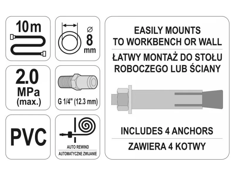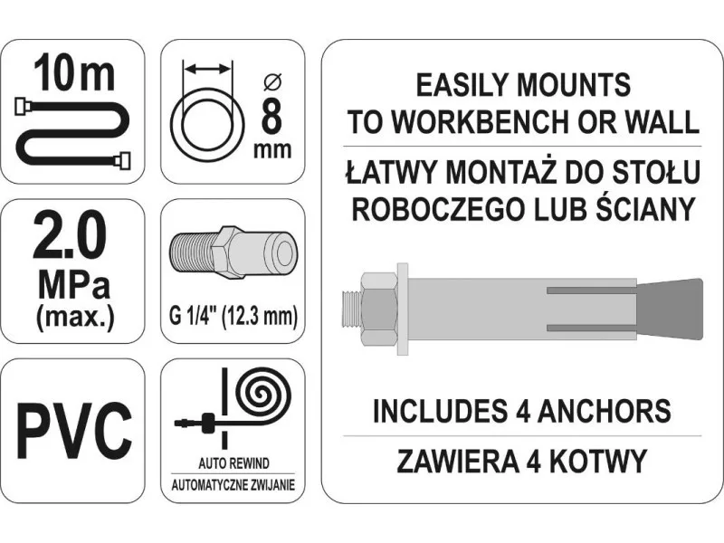 YATO Automatický navijak pneumatických hadíc 8 mm x 10 m