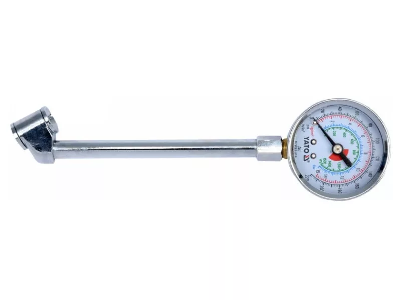 Profesionálny tlakomer. Rozsah merania do 15 barov. Celková dĺžka 140