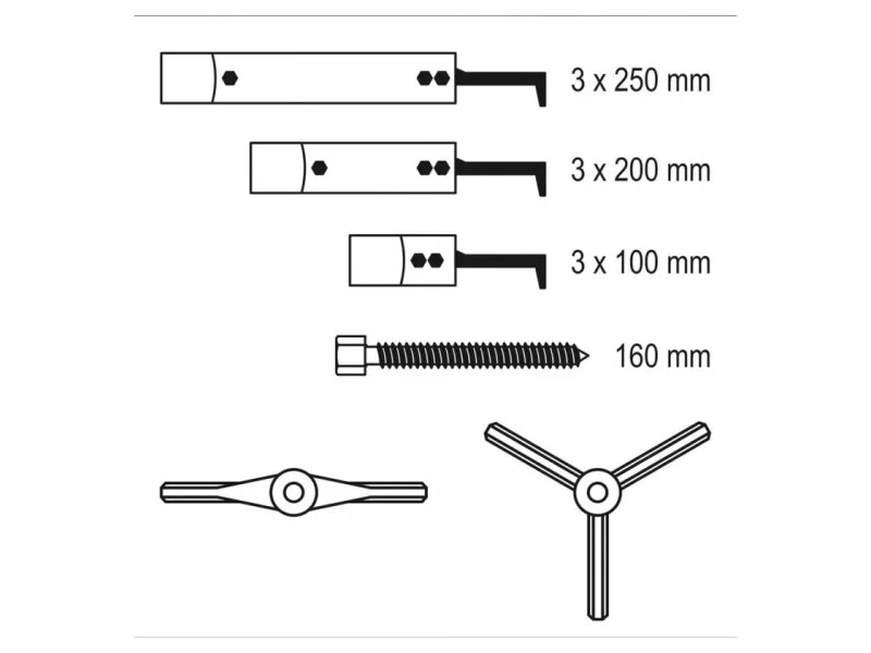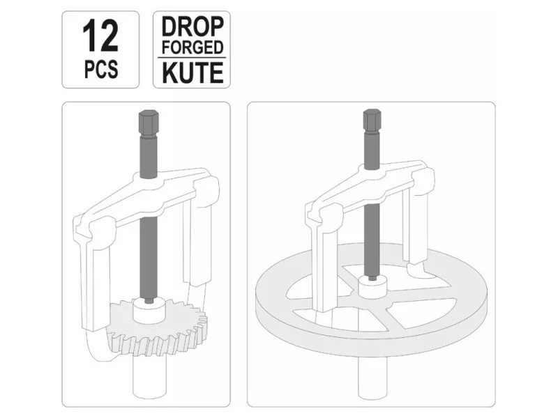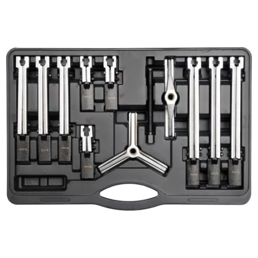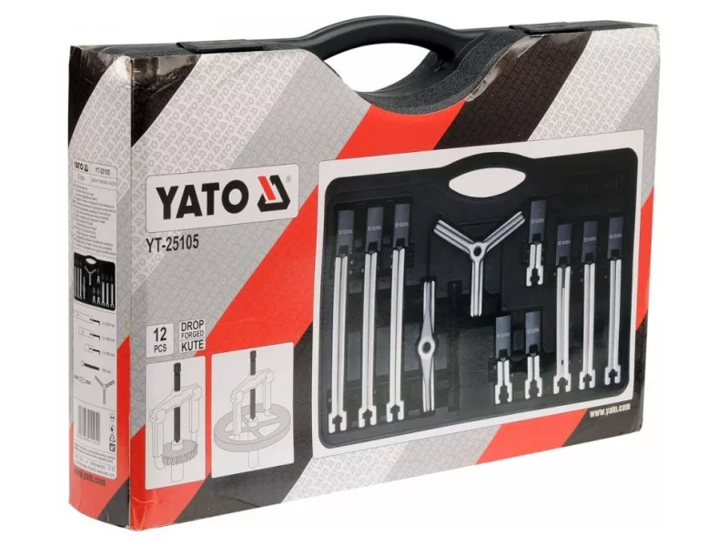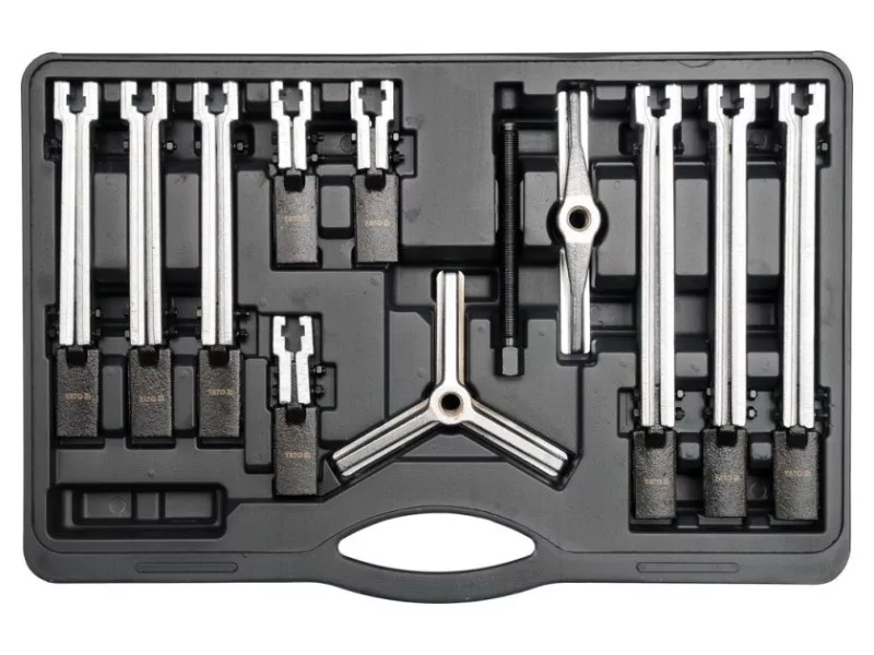 Profesionálna súprava na ťahanie veľkých ložísk, remeníc a ozubených kolies. Komponenty sady umožňujú zostaviť tieto sťahováky: dvojramenné sťahováky s dĺžkou vnútorného a vonkajšieho ramena 100/200 a 250 mm a trojramenné sťahováky s dĺžkou vnútorného a vonkajšieho ramena 100/200 a 250 mm. Súprava môže nahradiť dvanásť rôznych sťahovákov. Profesionálna súprava na sťahovanie veľkých ložísk, remeníc a ozubených kolies. Komponenty sady umožňujú montáž týchto sťahovákov: dvojramenné s dĺžkami ramien 100/200 a 250 mm vo vnútornom a vonkajšom vyhotovení a trojramenné s dĺžkami ramien 100/200 a 250 mm vo vnútornom a vonkajšom vyhotovení. Súprava môže nahradiť dvanásť rôznych ťahadiel.