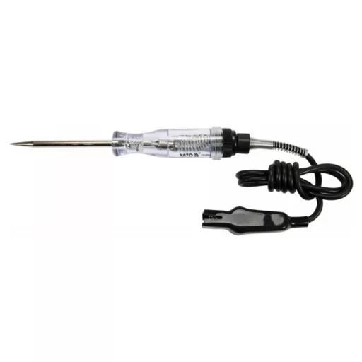 Automobilová skúšačka napätia vybavená LED diódou. Rozsah merania od 6 V do 12 V. Dĺžka kábla 90 cm. Na kontrolu účinnosti elektrických zariadení od 6 do 12 V.