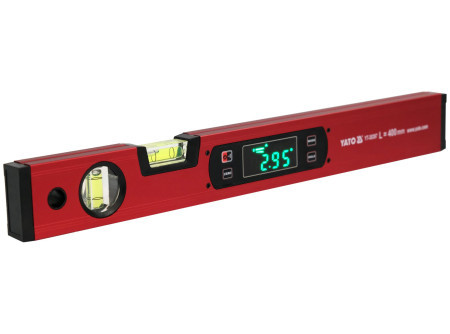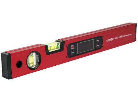 Elektronická úroveň dlhá 400 mm s anodizovaným hliníkovým telom. Je vybavená dvoma bublinkovými úrovňami a LED osvetlením. Meracia plocha je presne opracovaná, so štyrmi silnými magnétmi. Je určená pre presné merania, na určenie horizontálnej alebo vertikálnej polohy. Napájanie: 2 ks 1,5 V, AAA batérie.