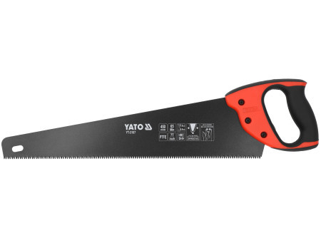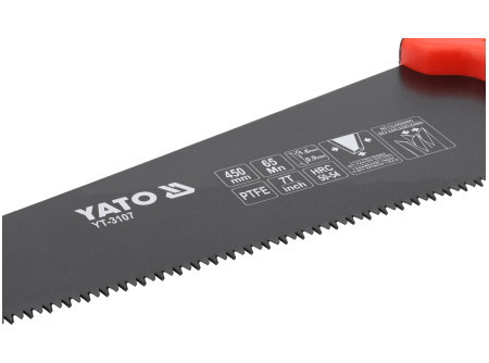 Píla na rezanie dreva a materiálov na báze dreva, ako sú dýhované dosky, drevotrieskové dosky, dosky MDF. Čepeľ je vyrobená z mangánovej ocele označenej MN65, ktorá je odolná voči opotrebeniu a deformácii, s povrchovou úpravou PTFE /chemický názov Teflon/ minimalizujúcou trenie. Zuby píly majú špeciálny trojuholníkový profil, ktorý sa prispôsobuje agresívnemu rezaniu v oboch smeroch. Okrem toho zuby sú kalené na 50-54 HRC. Stĺpec 7 TPI. Rukoväť je uzavretá, vyrobená z plastu. Píla na drevo s nízkym trením. Rýchle rezanie v oboch smeroch, pre drevo a materiály na báze dreva. Pre stolárov, tesárov, pokrývačov a DIY hobby kutilov.