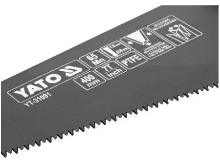 Ručná píla, takzvaný "strojník", na drevo a materiály na báze dreva, ako sú drevotrieska, MDF, sklepenica. Čepeľ je vyrobená z oceľového plechu s prídavkom mangánu (Mn 65), vyznačuje sa vysokou odolnosťou voči opotrebeniu a deformácii. Povrch čepele je pokrytý vrstvou PTFE, čo znižuje trenie počas rezania. Zuby s trojuholníkovým profilom, agresívne a efektívne na rezanie v oboch smeroch. Výška závitu medzi plechom a zubami 7 tpi umožňuje efektívne, rýchle a presné rezanie. Dĺžka čepele: 1 mm. Drevená rukoväť, hrubá, s ochranným gumeným obalom. Profil rukoväte umožňuje značenie uhlí 45° a 90° na materiáli, ktorý sa má rezat. Pre rýchle rezanie dreva a materiálov na báze dreva.