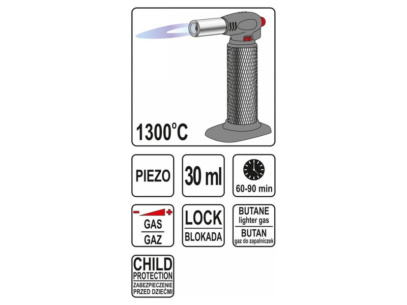 Egyébként tökéletes sok háztartási felhasználásra, mint például kandallók, grillezők vagy sütők gyújtásakor, valamint a vendéglátásban (pl. creme brulee).