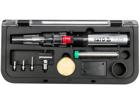 3 v 1 sada plynového spájkovacieho prístroja s piezo zapalovaním, poháňaná samozapalovacím plynom - butánom, s výkonom 30-125W.