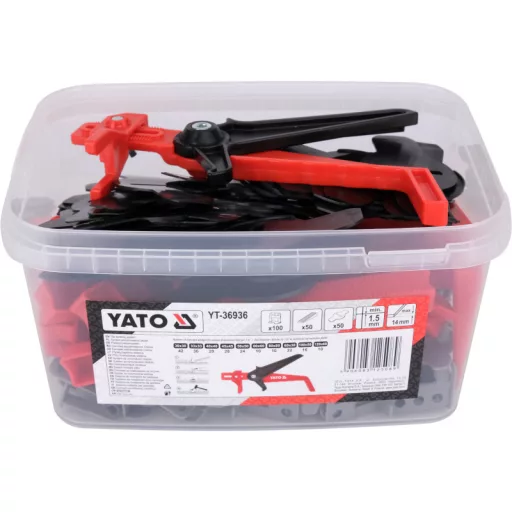 Účinný systém na vyrovnávanie dlažieb, ktorý uľahčuje a urýchľuje ich pokladanie a tiež pomáha odstraňovať nerovnosti povrchu. Súprava pozostáva z 100 odpojiteľných klipov (bránok), 50 podložiek, 50 klinov na opakované použitie a kleští, vyrobených z vysokej kvality umelého materiálu. Nepotrebujete žiadne ďalšie nástroje.