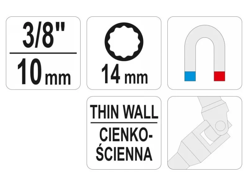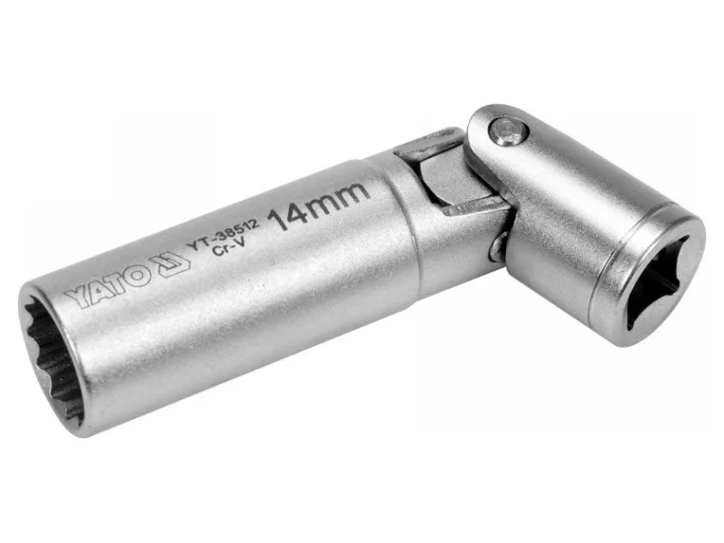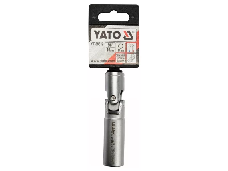 Zásuvka zapaľovacej sviečky s prepínačom. Veľkosť pohonu 3/8", veľkosť zásuvky 14 mm.