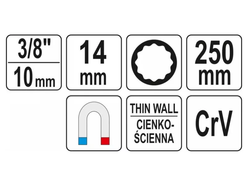 YATO kľúč na zapaľovacie sviečky extra dlhý 3/8" 14 mm / 250 mm magnetický CrV