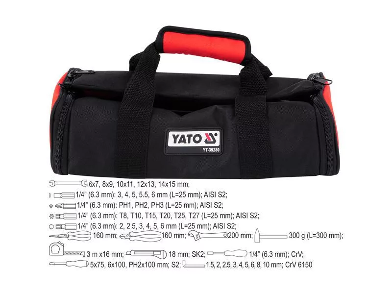 Súprava s väčšinou užitočných nástrojov do domácnosti, ktoré zahŕňajú vysokej kvality produkty značky YATO.