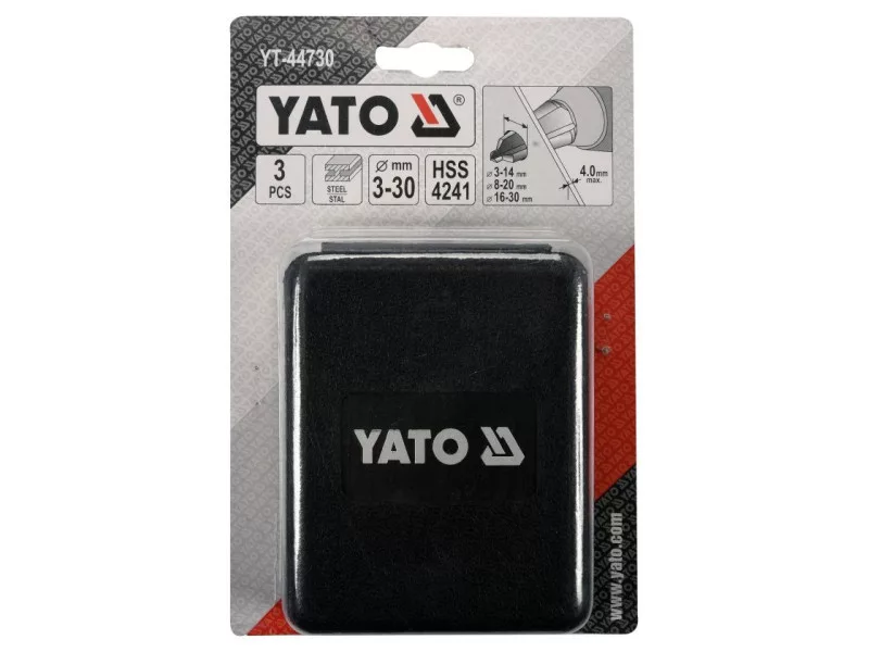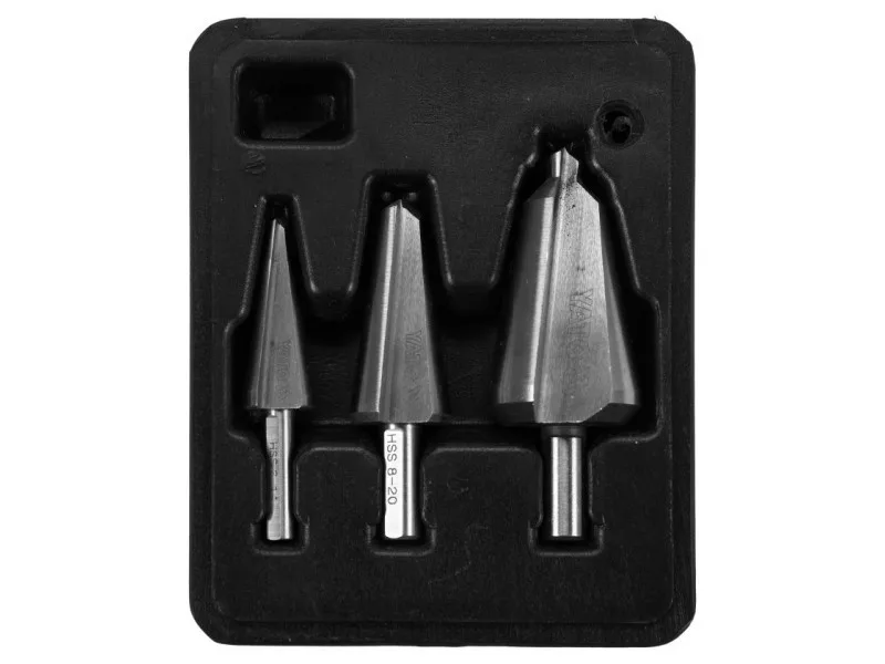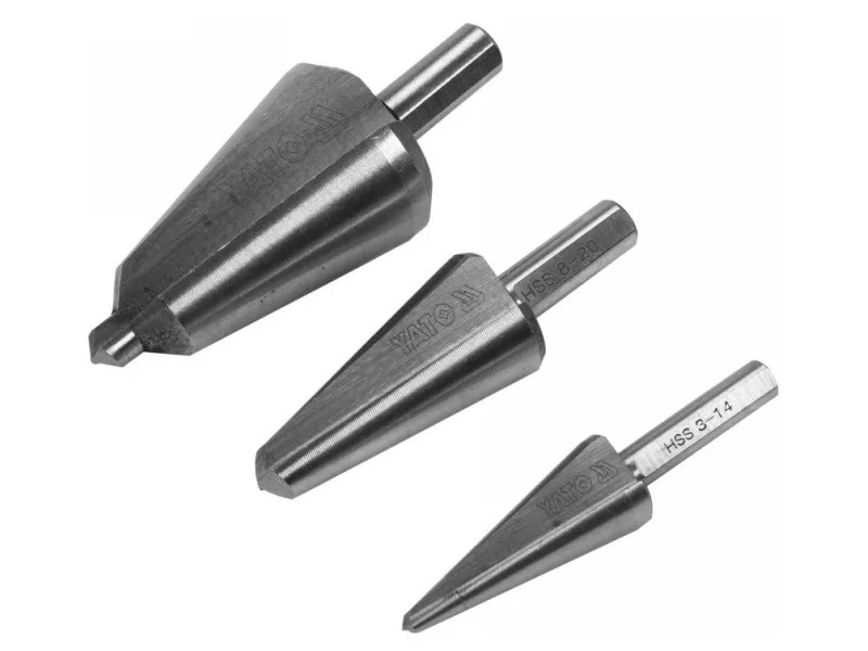 Sada kužeľových vrtákov značky YATO vyrobených z odolnej a rýchlej ocele HSS na vŕtanie do tvrdých legovaných ocelí, hliníka, plechu a PVC. Špeciálne tvarovaný kužeľový profil uľahčuje vŕtanie a centrovanie. Vďaka použitiu rýchloreznej ocele zostávajú okraje vyvŕtaných otvorov čisté a bez otrepov. Súprava zabalená v praktickom kufríku obsahuje 3 veľkosti vrtákov.