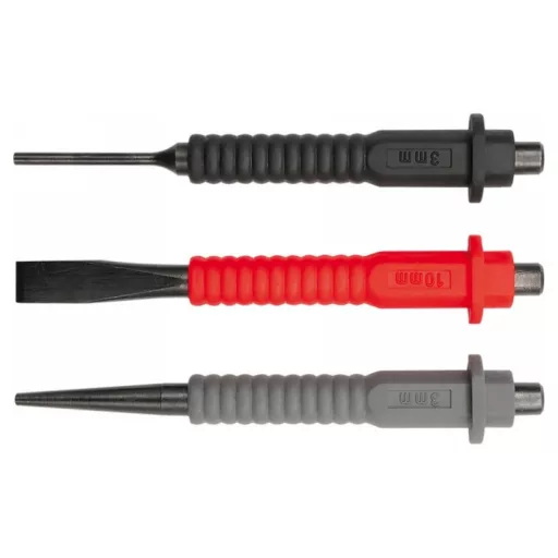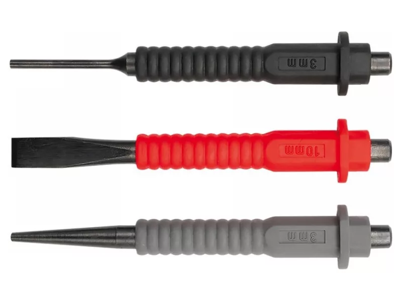 Kované z CrV ocele, s plastovými rukoväťami s ochrannými krytkami, povrch nástroja začiernený.