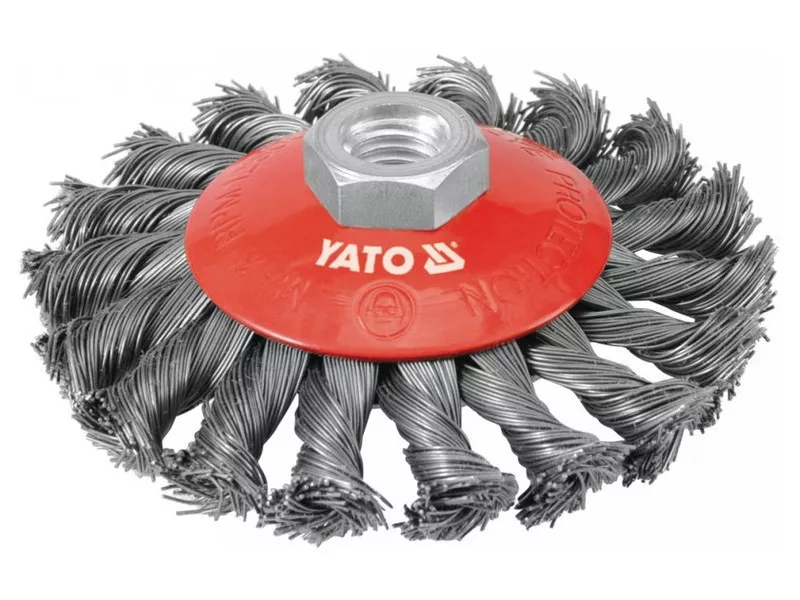 Kotúčová kefa YATO YT-4763 je profesionálny nástroj na intenzívne čistenie a prípravu povrchov. Odolná konštrukcia zo spleteného drôtu a závit M14 zabezpečuje efektívnu prácu.