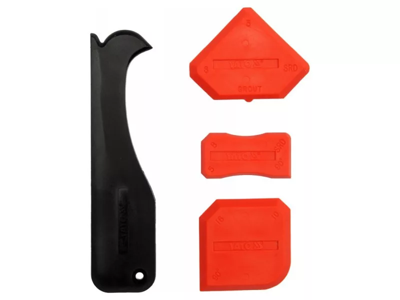 Súprava obsahuje štyri špachtle rôznych hrúbok a profilov, ako aj praktickú frézu na odstraňovanie prebytočnej škárovacej hmoty.