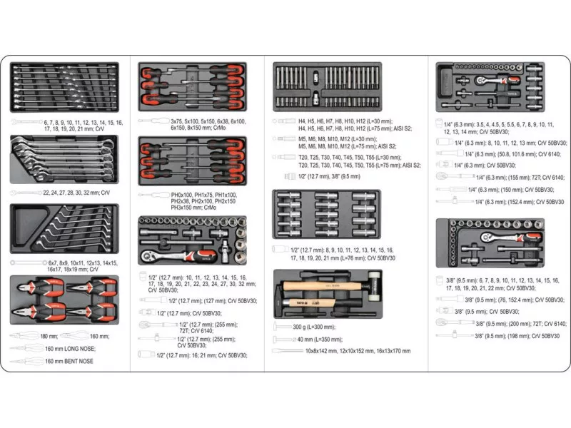 • Obsah: 12 vymeniteľných vložiek YATO, 177 prvkov