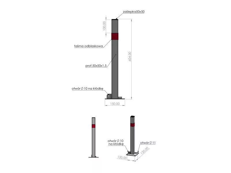 Sklopný parkovací zámok "stĺpik" na účinné zabezpečenie priestorov proti neoprávnenému vjazdu alebo parkovaniu vozidiel. Poskytuje pohodlie a bezpečnosť pri riadení prístupu do určených oblastí. Umožňuje dočasné zablokovanie parkovacích miest alebo vjazdu, napr. na súkromných pozemkoch, chodníkoch, zelených plochách, protipovodňových hrádzach, promenádach.