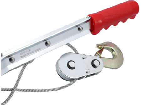 Ručne poháňaný navijak na kábel je vyrobený z oceľového tela, ktoré obsahuje bubon, prevodové kolesá a veľký, správne zvolený pomer. Bubon sa môže otáčať pomocou kľuky a naň sa môže navíjať oceľový lano. S navijakom možno presúvať bremená s hmotnosťou približne 1020 kg na vzdialenosť 3 m. Ručne poháňaný navijak na kábel sa používa na presúvanie bremien na horizontálnej rovine, napríklad na ťahanie krabíc po sklápacom moste. Kvôli konštrukcii nie je možné ho použiť na vertikálne zdvíhanie.
