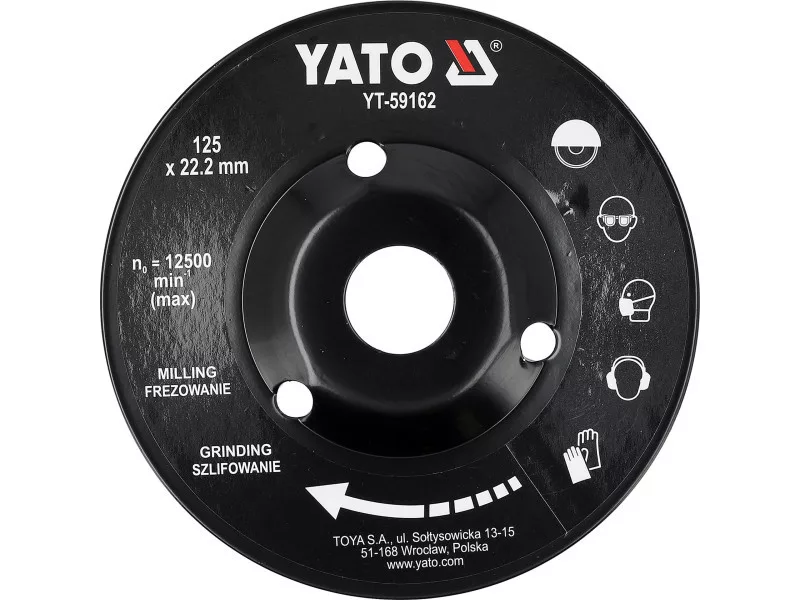Skosený fréz s priemerom 125 mm vyrobený z uhlíkovej ocele určený na hrubú obrábkuvanja, pórobetóna a sadrokartónových dosiek. Umôžňuje efektívne odstraňovanie materiálu (brúsenie, odstraňovanie starých náterov) a prípravu povrchu, dosahujúc efekt predbrúsenia. Doska zabezpečuje presnú a stabilnú prácu, a zatvrdnutý a lakovaný povrch zvyšuje odolnosť nástroja.