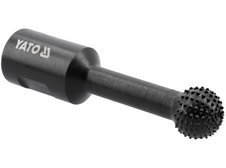 Uhlíková oceľová kulová fréza s čiernym povrchom. Je užitočná pri práci s drevom, pri inštalácii dverných zámkov na rozšírenie otvorov, pri prispôsobení spojov trámov a zaoblení hrán.