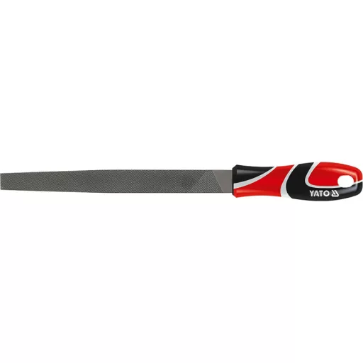 Kovový pilník , plochý, zúžený, dvojnásobný rez 200 mm s trojkomponentnou rukoväťou od Yato.