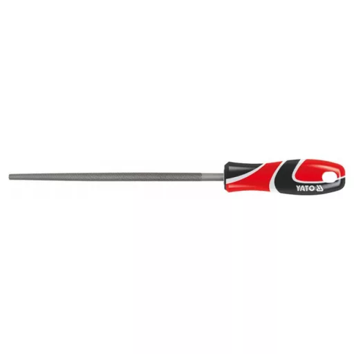 Okrúhly kovový pilník, zúžený, dvojito brúsený, 250 mm, s trojkomponentnou rukoväťou Yato.