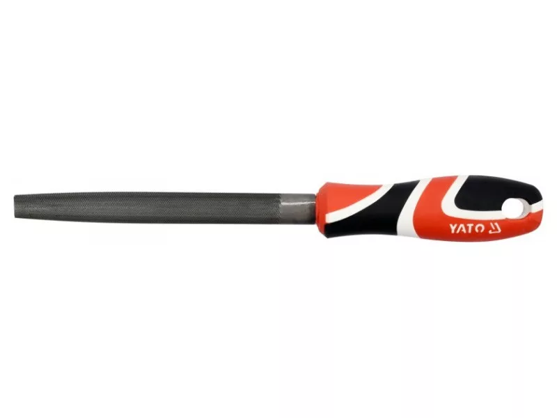 Polkruhový kovový pilník , zúžený, trojrezný, 150 mm, s trojkomponentnou rukoväťou od spoločnosti Yato.