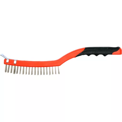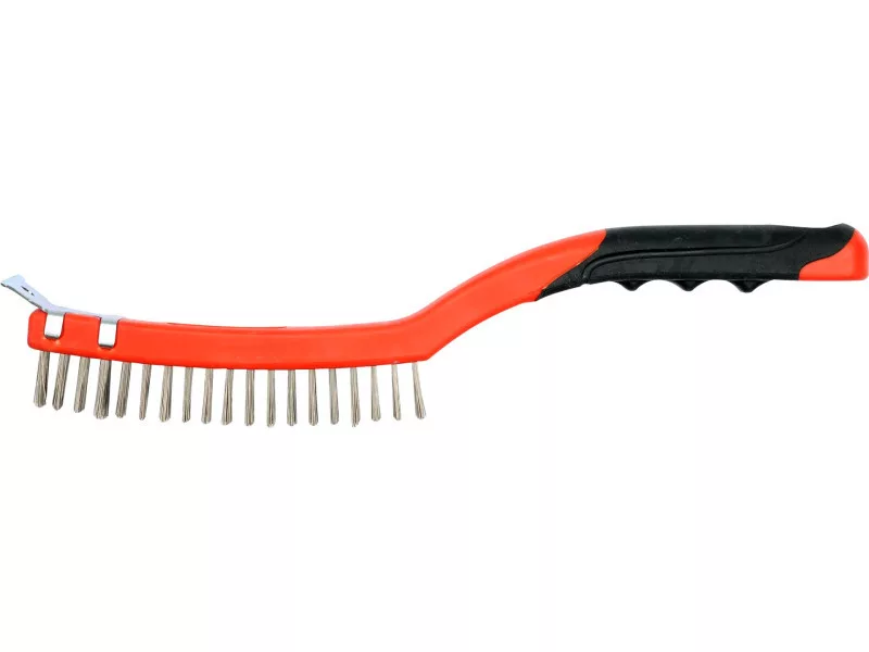 Vyrobené z pružinového drôtu z nehrdzavejúcej ocele trvalo vloženého do plastového tela. Kefka profilovaná na zvýšenie účinnosti čistenia. Ukončená škrabkou z nehrdzavejúcej ocele.
