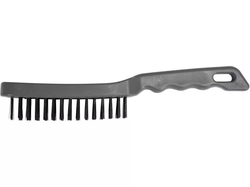 Vyrobené z pozinkovaného, pružného oceľového drôtu trvalo vloženého do plastového tela. Kefa profilovaná na zvýšenie účinnosti čistenia.