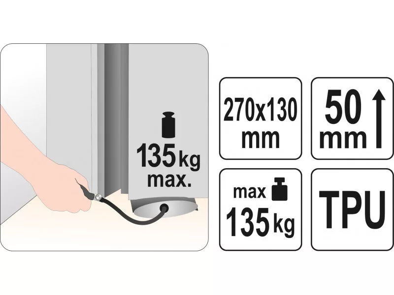 Na umiestňovanie ťažkých obrobkov s hmotnosťou do cca 135 kg. Umožňuje ľahké premiestňovanie /zdvíhanie, premiestňovanie, vyrovnávanie/ napr. nábytku, okenných alebo dverových rámov, práčok, chladničiek, dielov a zariadení pri rôznych technických prácach. Umiestnite prázdny vankúš / hrúbka cca 2 mm do požadovanej polohy zatvorte ovládací ventil a pomocou čerpadla na konci hadice vháňajte do vankúša vzduch, ktorý spôsobí jeho napučanie a premiestnenie predmetu. Ak chcete vankúš vybrať, otáčajte ventilom a zároveň postupne uvoľňujte vzduch.
