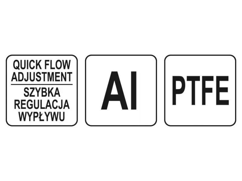 Telo je plne chránené PTFE vrstvou, ktorá znižuje priľnavosť peny a uľahčuje čistenie. Hlavný ventil pištole je vybavený presnou PTFE vložkou, ktorá zaručuje jeho dlhodobú tesnosť.