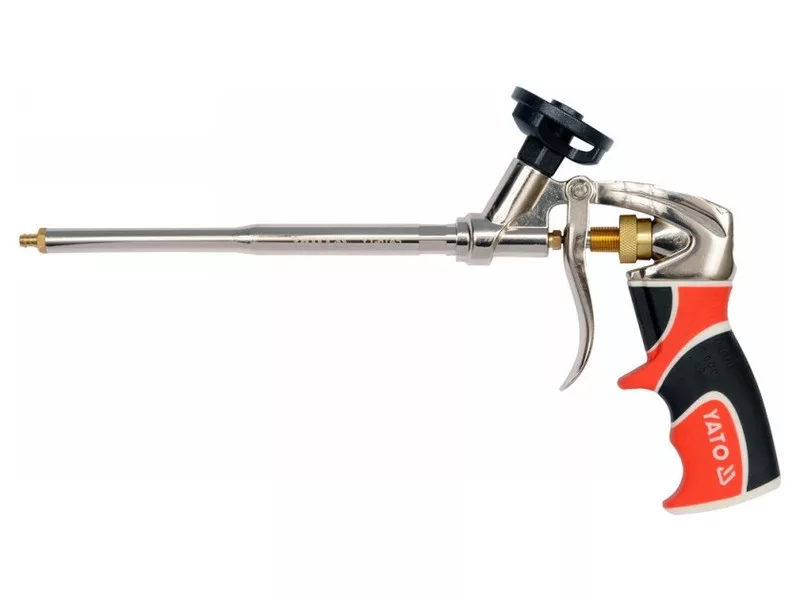 Pištoľ určená na aplikáciu polyuretánovej peny. Vysoká kvalita - vďaka použitiu vhodných, vysokokvalitných materiálov z nehrdzavejúcej ocele, hliníka a mosadze. časti, ktoré sú najviac vystavené opotrebovaniu v dôsledku pôsobenia peny a korózie, boli dodatočne chránené povlakom PTFE.
