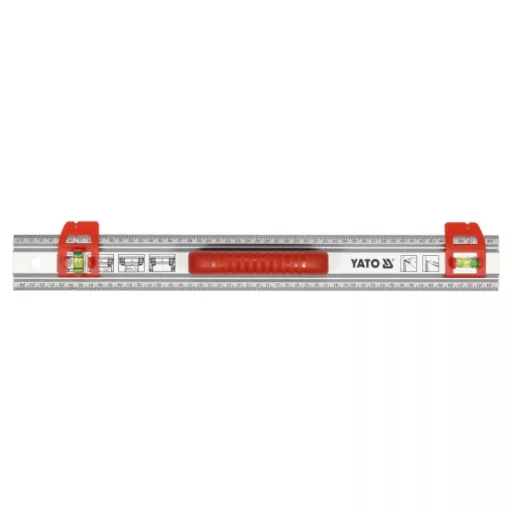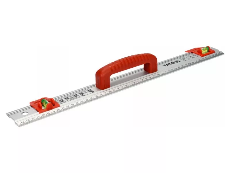 Veľká rukoväť poskytuje bezpečné držanie počas používania. Pravítko možno zavesiť pomocou otvoru, ktorý je na tento účel k dispozícii.