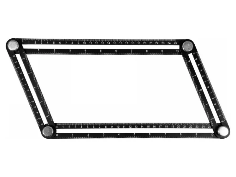 Nastaviteľný štvorhran na prenášanie meraní, vyrobený z robustných hliníkových plochých tyčí. Metrické a imperiálne stupnice trvalo vyznačené na povrchu. Na znázorňovanie tvarov v stolárstve, obkladačstve, dekoratérstve atď.