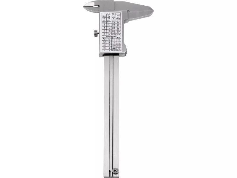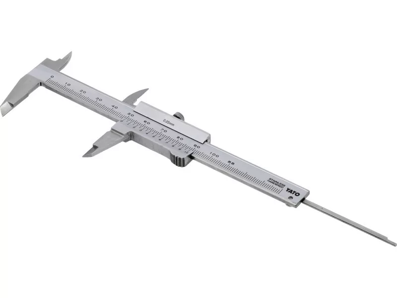 Nerezové meradlo na meranie dĺžky, výšky, hĺbky a vnútorného a vonkajšieho priemeru. Umožňuje meranie v rozsahu 0-100 mm s presnosťou 0,05 mm. Jasné a čitateľné delenie zabezpečuje presnosť a jednoduché odčítanie uvedených hodnôt.