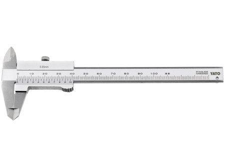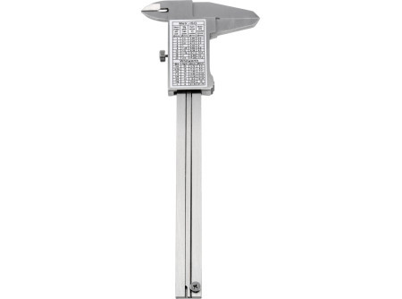 Nerezový posuvný merací prístroj na meranie dĺžky, výšky, hĺbky a vnútorného a vonkajšieho priemeru. Umožňuje meranie v rozsahu 0-100 mm s presnosťou 0,05 mm. Čisté a ľahko čitateľné rozdelenie zabezpečuje presnosť a ľahkú čitateľnosť odčítaných hodnôt.