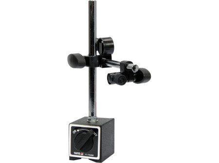Profesionálny magnetický stojan YT-72460, YT-72450 a YT-72453 pre hodinové senzory. Disponuje pružinovým kĺbom pre presné umiestnenie senzora na meracej ploche. Jeho stredový a horný kĺb sú súčasne fixované centrálne pomocou tlačidla. So magnetickou základňou, na spodnej časti ktorej sa nachádza prizmatická drážka. Veľká ťahová sila zaručuje stabilné a bezpečné spojenie s kovovými dielmi - odpojenie prvku sa realizuje pomocou špeciálneho tlačidla.