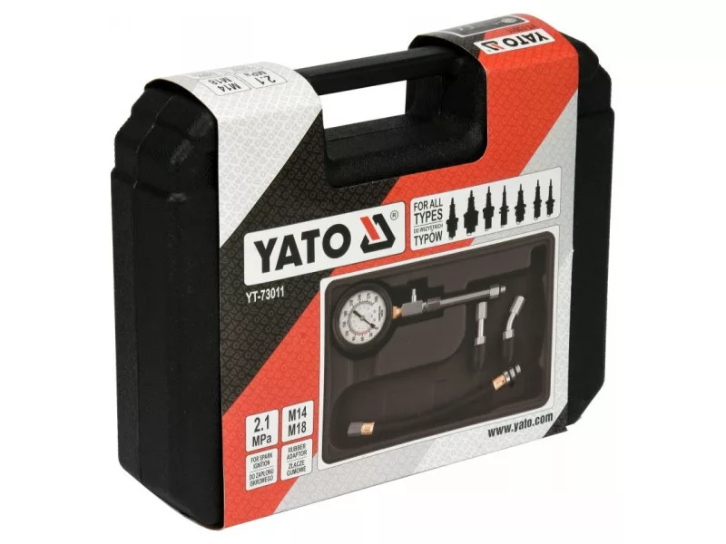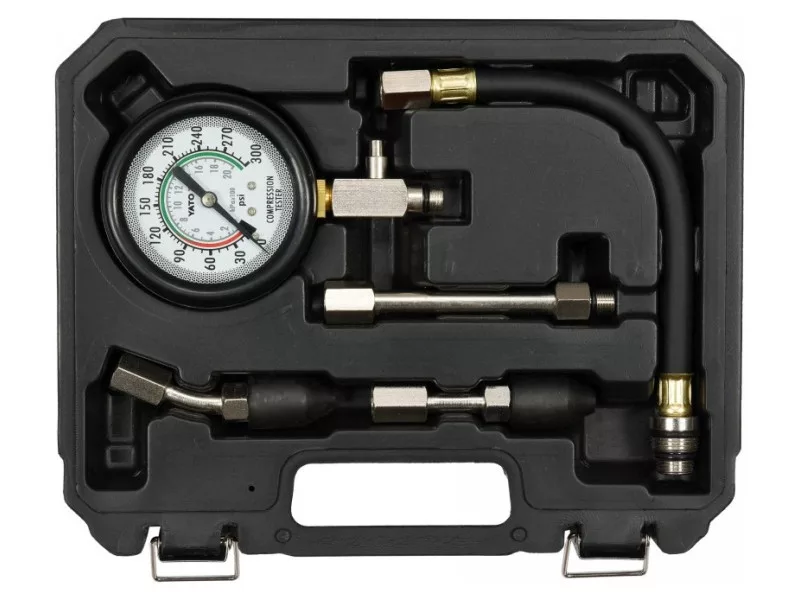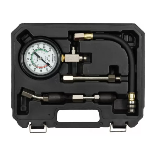 Päťdielna súprava určená na meranie kompresného tlaku v zážihových motoroch. Odporúča sa pre automobilové a mechanické servisy.